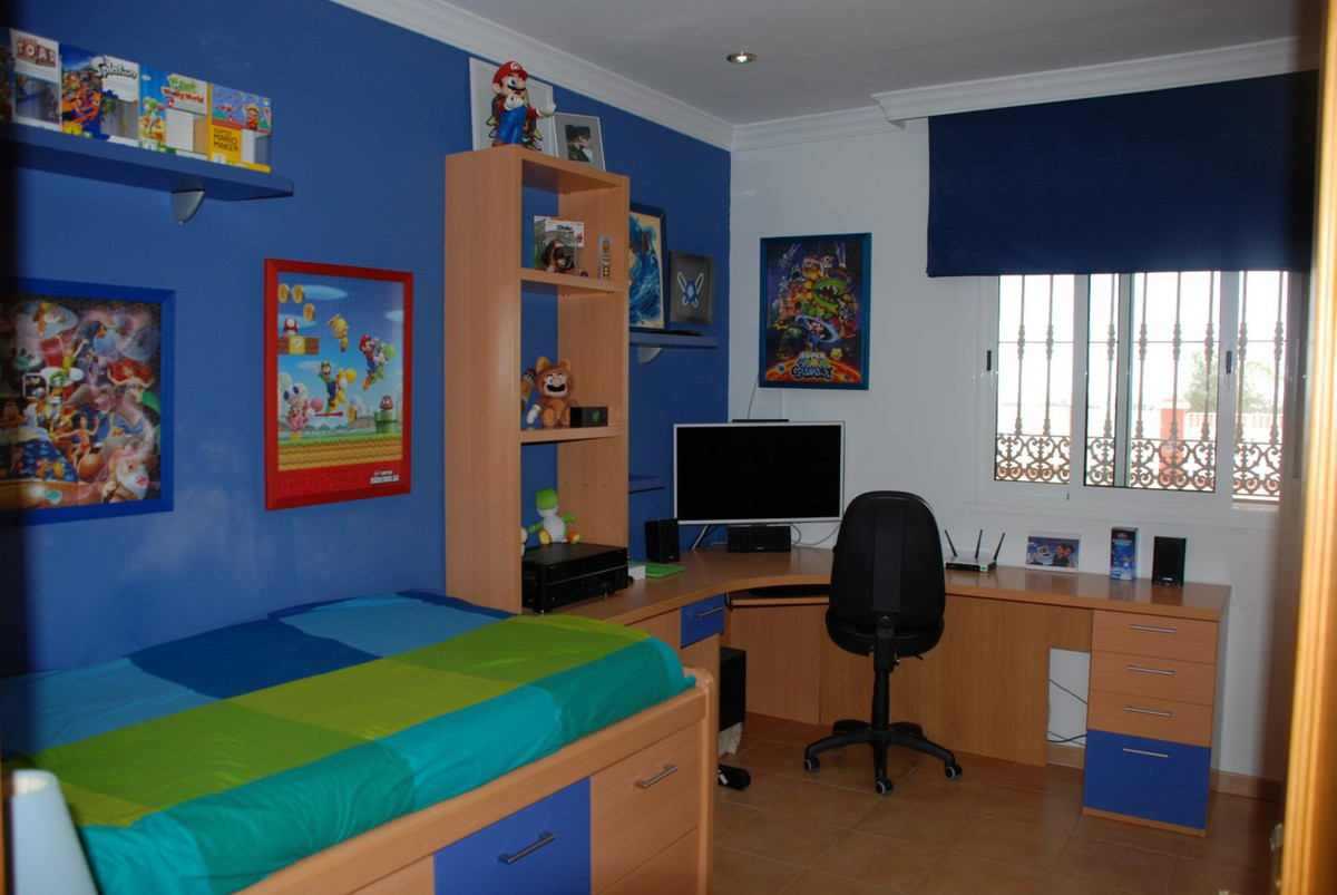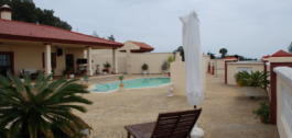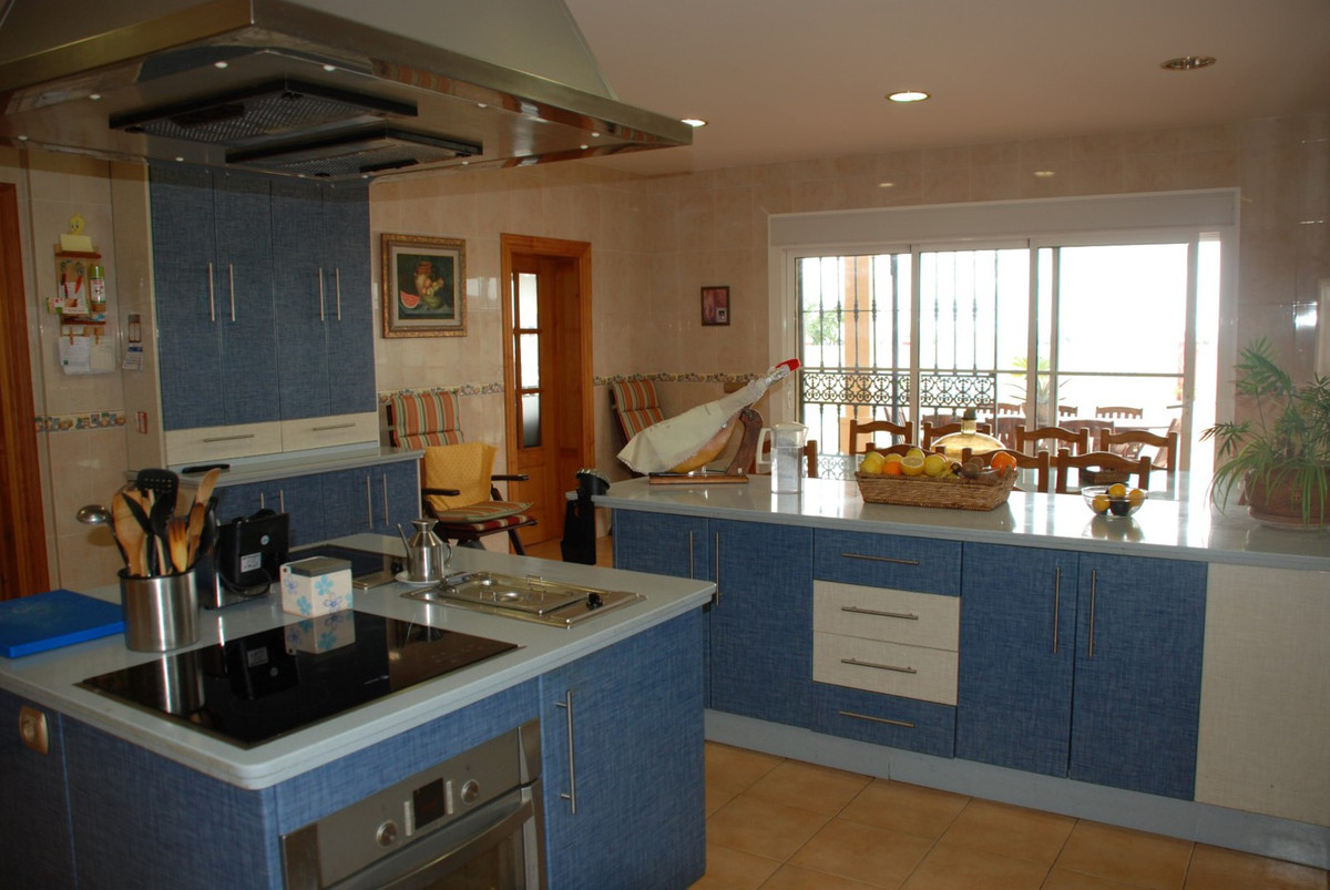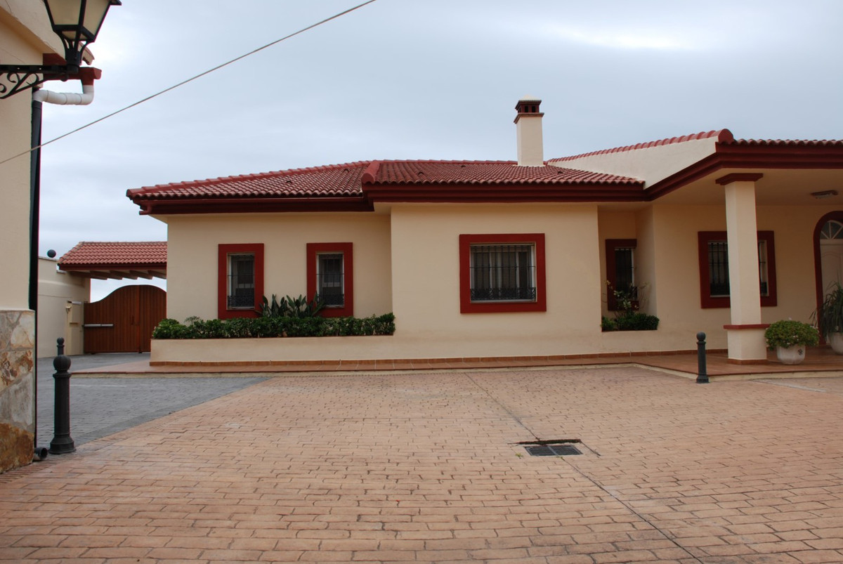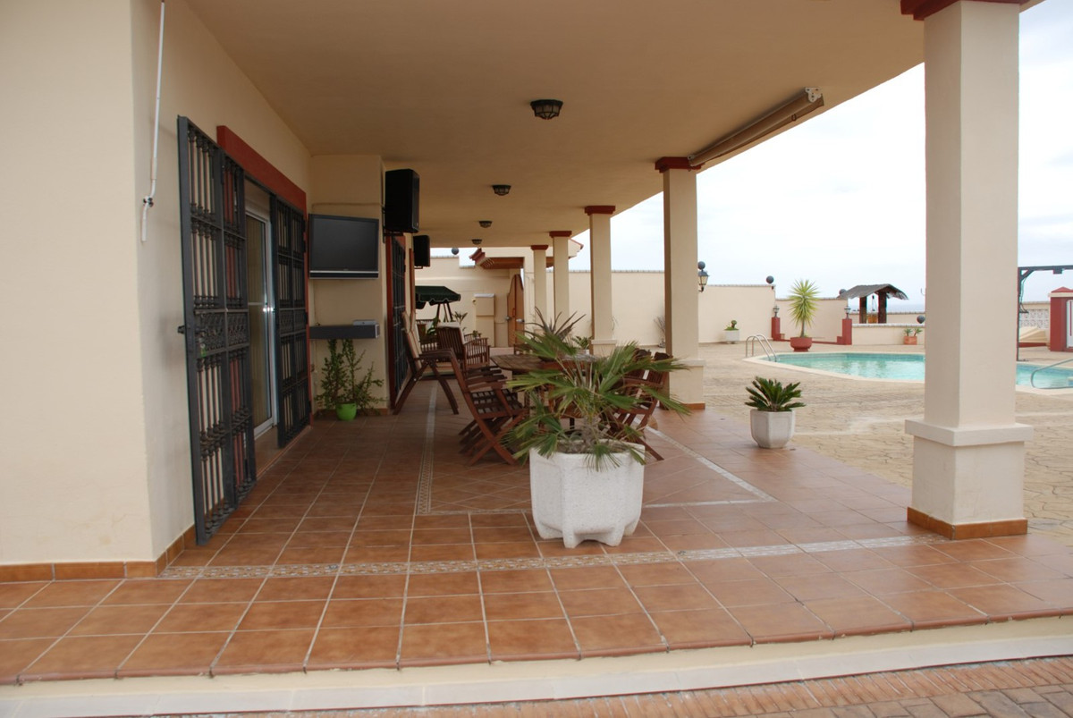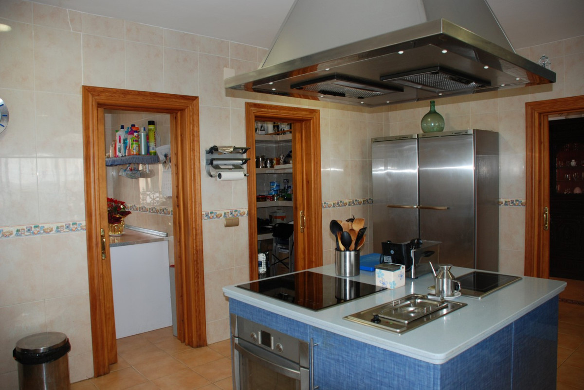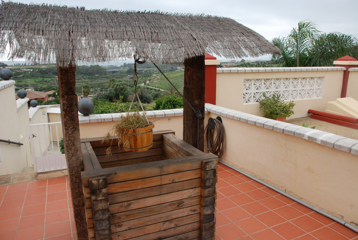 Very special bungalow villa on 2800 square meters land in Estepona. 1600 square meters are built up area. All on one level and beautiful panoramic views of the Mediterranean. Huge eat-in kitchen with separate dining area and laundry. All rooms have access to the landscaped terrace. On the terrace you have a large heated pool and a built in BBQ. There are several storage rooms, a workshop and a small private gym. Air Conditinning, Solar Energy for 500 liter of hot water. garage with automatic doors for 4 cars. Rest of the plot has 45 fruit trees and some agrikultur. There is also a water reservoir about 30.000 liter of fresh water. two big electric entrance door with cameras.