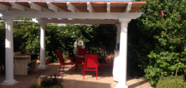 OPPORTUNITY to buy two single-storey villas on a 2800m2 fenced plot. The main villa consists of a living-dining room with fireplace, another very large dining room, a separate fitted kitchen, 5 bedrooms each with en-suite bathroom, three of them with a private terrace, air conditioning in all rooms. The second villa consists of a living-dining room with fireplace, fitted kitchen, two bedrooms, 1 bathroom, terrace, storage room, garden with many fruit trees, swimming pool (without cover), jacuzzi, solar panels, town water and private well, recently changed plumbing and electricity installation, new double-glazed windows, automatic gate, a charming country house-style property, perfect for two families or holiday rental. LICENCE FOR HOLIDAY RENTALS IS AVAILABLE.