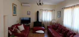 – Main floor with a spacious entrance porch with panoramic views and the entrance to the house. It consists of an ample living-dining room with a wood-burning stove and A/C unit (hot and cold). From the dining room we have a large, fully furnished kitchen, as well as a double bedroom and a full bathroom.