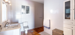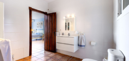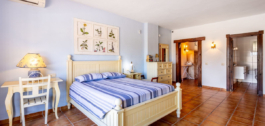 The wide staircase leads down to a large open plan landing area with understair storage leading to the two downstairs bedrooms. The primary bedroom, which is of a larger than generous size with ensuite bathroom and separate dressing room could be re-configured into an apartment or offer a fifth, additional bedroom. The second, also impressively large guest bedroom has an ensuite bathroom and again, could become a self-contained suite. Both rooms share views of the pool, garden, olive grove, mountains and countryside.