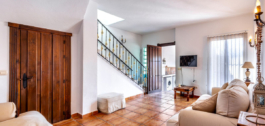 The villa comprises of four bedrooms and three bathrooms, there is plentiful storage, traditional features and touches throughout. On entering the property there is a wide entrance hallway, leading straight into the family, open plan lounge-dining room with the most incredible vaulted ceilings, showcasing views from the large, double framed windows. On this level you will find two rather large bedrooms, a family bathroom and fully equipped kitchen.