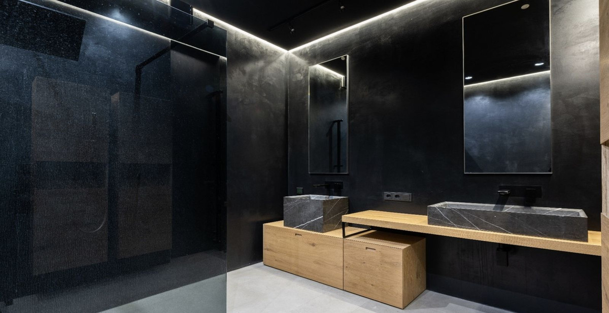 – Bathroom walls with COVERLAM plates (GRESPANIA) 2700X1200 (Color to choose)