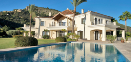 This exclusive property offers stunning views of the sea, the Spanish and African coasts and Gibraltar and is situated in a very private and protected location in the elegant and gated Marbella Club Golf Resort. Built with the highest quality; solid wooden floors, Travertino marble, custom made windows, excellent isolation, very modern domotic system, solar and heat pumps for hot water and heating, individually adjustable underfloor heating (solar energy) throughout the house, illuminated and heated swimming pool, poolside barbecue area, spa and gym area, wine cellar, elegant eat-in kitchen, spacious ensuite bedrooms with adjoining bathrooms, are just some of the many outstanding amenities of this beautiful home. The garden is a dream, it has been lovingly landscaped and planned by its owners and has a fully automatic irrigation system. The flat plateau plot has been secured on all sides and is well fenced. Marbella Club Golf Resort with its 18-hole golf course is very privileged and private, yet only 20 minutes away from Marbella, located in the middle of the beautiful Benahavis mountains. This residential area has a gated entrance and 24-hour security. Marbella Club Golf Resort has a wonderful restaurant just 10min walk from the villa where You can enjoy a wonderful meal and a glass of wine.