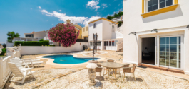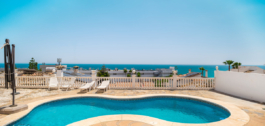 The villa features five well-proportioned bedrooms and three modern bathrooms, thoughtfully distributed across a light-filled layout. The open-plan living and dining area flows seamlessly into a fully equipped, contemporary kitchen, all oriented to capture panoramic views of the Mediterranean Sea.