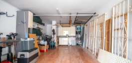 Below the house is a spacious garage, with space for a large car and storage.