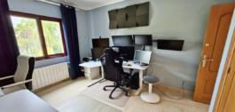 Outside, the paved garden has a large swimming pool, pergola with outdoor jacuzzi, barbecue area & storage room. There is also an impressive games room with its own bar, kitchen and golf simulator, perfect for entertaining and sports events.