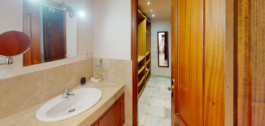 A fantastic value one level villa situated just steps away from the beach. Absolutely ideal for families, this charming traditional Andalucian villa offers a main house with 3 bedrooms and 3 bathrooms (2 of them ensuite). As you enter the villa, there is a small porch and a room used as TV area and on the left there is a small office. Next as you enter there is the quality fully fitted kitchen (with separate laundry room), semi-open to the spacious living room with fireplace and dining room. Access to each bedroom is at each corner of the living room. The large windows allow plenty of natural light and open out on to the swimming pool area with BBQ, alfresco dining area and a comfortable chill-out area. From here there are steps up to a sun deck, offering a private area to soak up the sun.