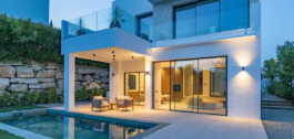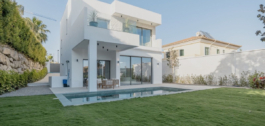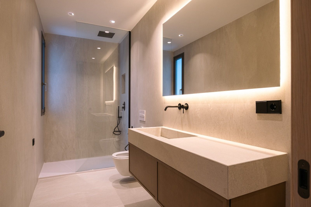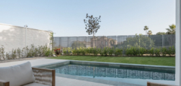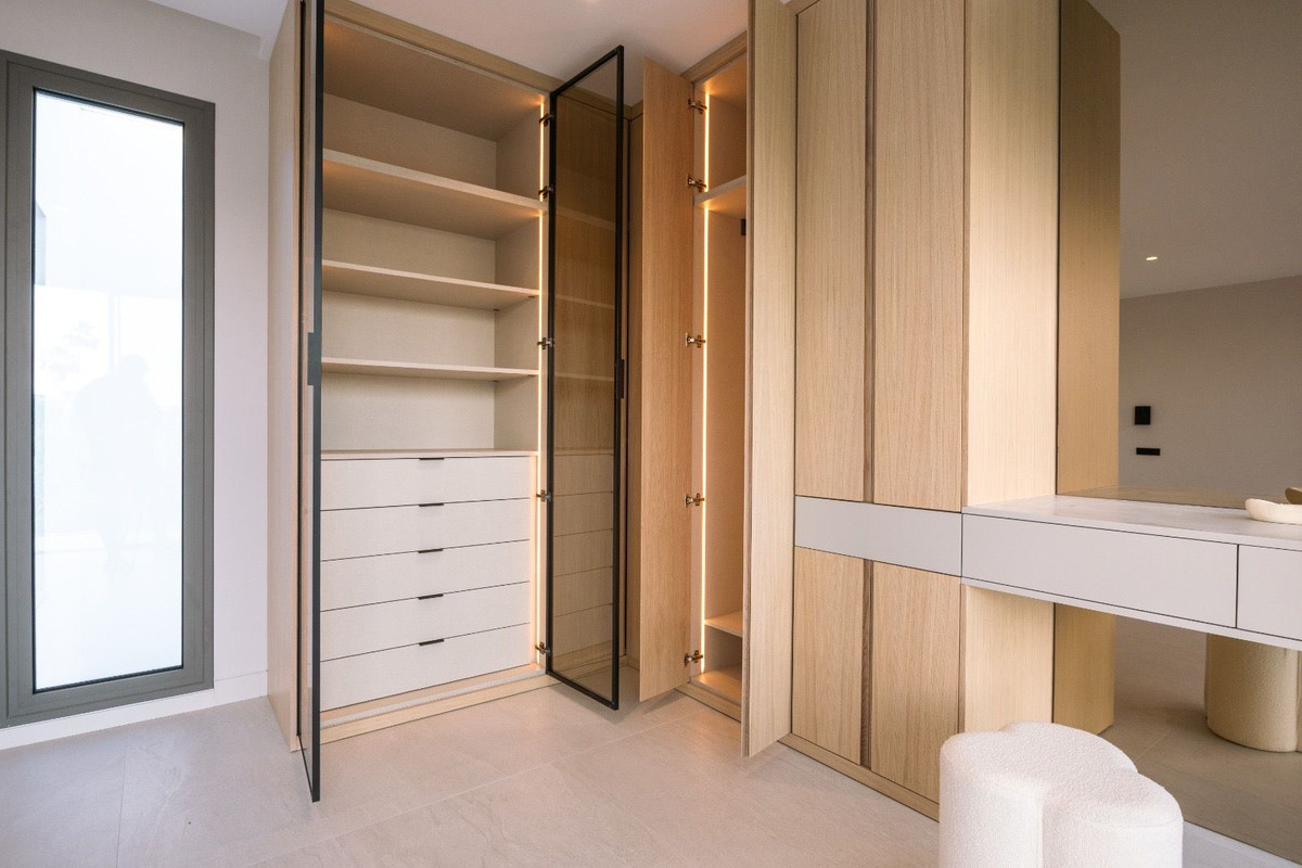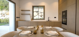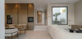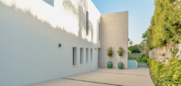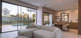 This Brand new exclusive contemporary villa on Arena Beach offers a modern, light-filled living experience. The spacious layout includes four bedrooms, each featuring state-of-the-art en suite bathrooms and handmade wardrobes with integrated lighting. The fantastic living area boasts large windows and direct access to the pool and beautiful private garden, while the high-quality American kitchen is equipped with Siemens appliances. Practical luxury is ensured by separately adjustable underfloor heating and air conditioning throughout the house. Adding to its appeal, the basement presents versatile rooms perfect for a games room, spa, or home cinema.