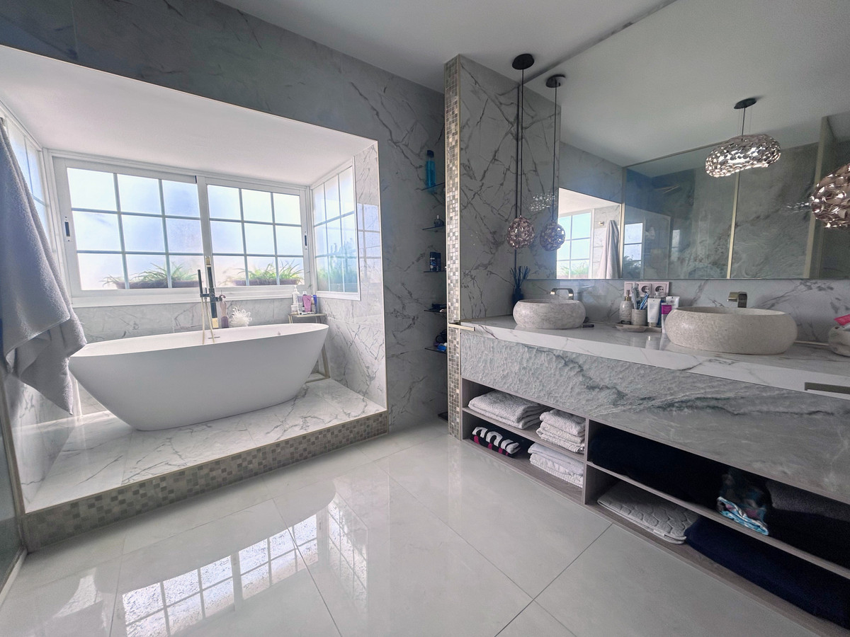 This bright and spacious villa is located in the quiet residential area of Guadalmina Alta, just 5 minutes from the beach and 8 minutes from the lively Puerto Banús. Securely gated, the property sits on a generous 1,400 m² plot with 623 m² built, offering a stylish and comfortable living environment.
