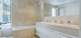 * The villa boasts beautiful cream-colored marble floors and benefits from underfloor heating. All rooms can be air-conditioned by cooling or heating.