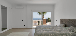 Upstairs, the private quarters offer access to two panoramic terraces overlooking the pool, garden, and coastline. The master suite and another bedroom include en-suite bathrooms, while a third bright bedroom and another full bathroom complete the level—perfect for families and guests seeking space and privacy.