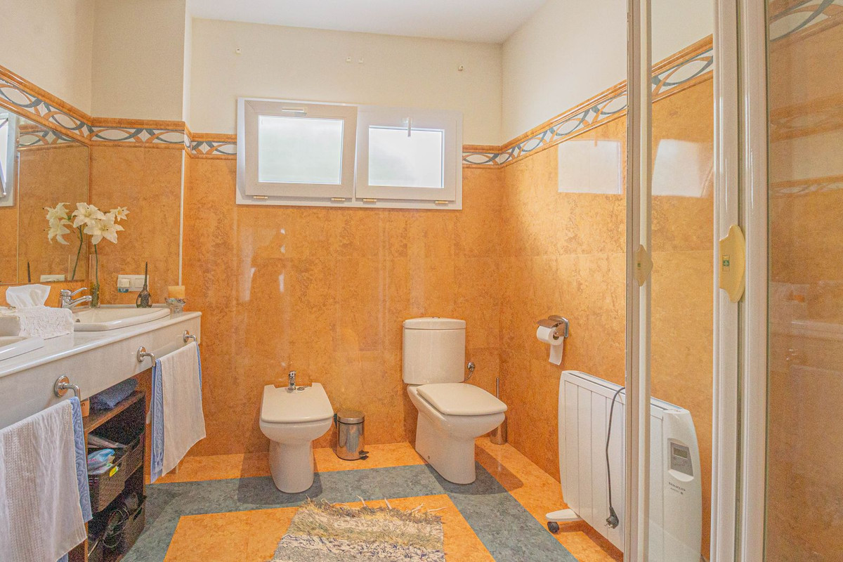 Outside, the property offers garden areas, a former organic orchard, and a container-style storage room ideal for additional storage. It also features a large solarium with stunning views of the Rock of Gibraltar, as well as a private garage with enough space for two cars and ample storage room.