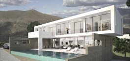 Currently under construction, the villa is designed with clean lines, expansive glass walls, and open-plan living areas that maximize natural light and the spectacular scenery. Set on a generous plot of over 3,700 m², the home boasts over 550 m² of built space plus 175 m² of terraces and a 300m2 solarium – perfect for entertaining, relaxing, or simply enjoying the tranquility of the setting.