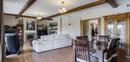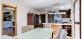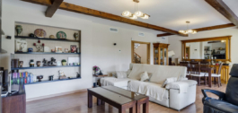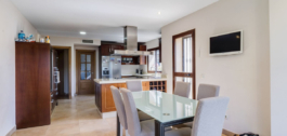 The villa features a cozy and functional design, highlighting its warm wooden floors that add elegance and comfort. It boasts a spacious living room ideal for relaxation and entertainment, and a large kitchen with a dining area, perfect for enjoying meals with family or friends.