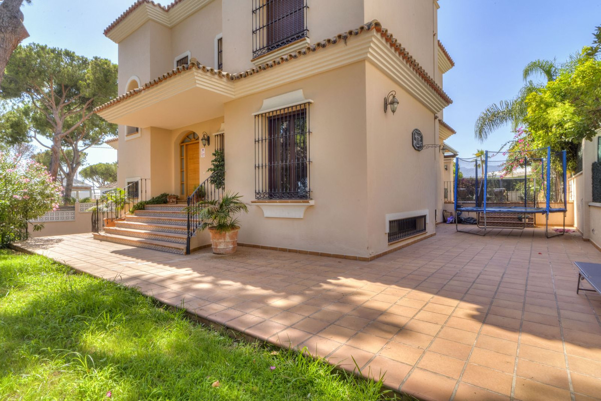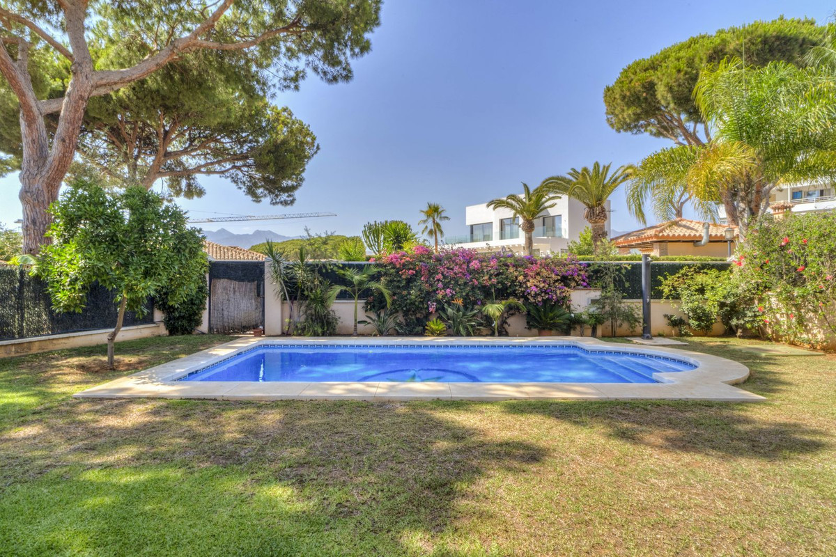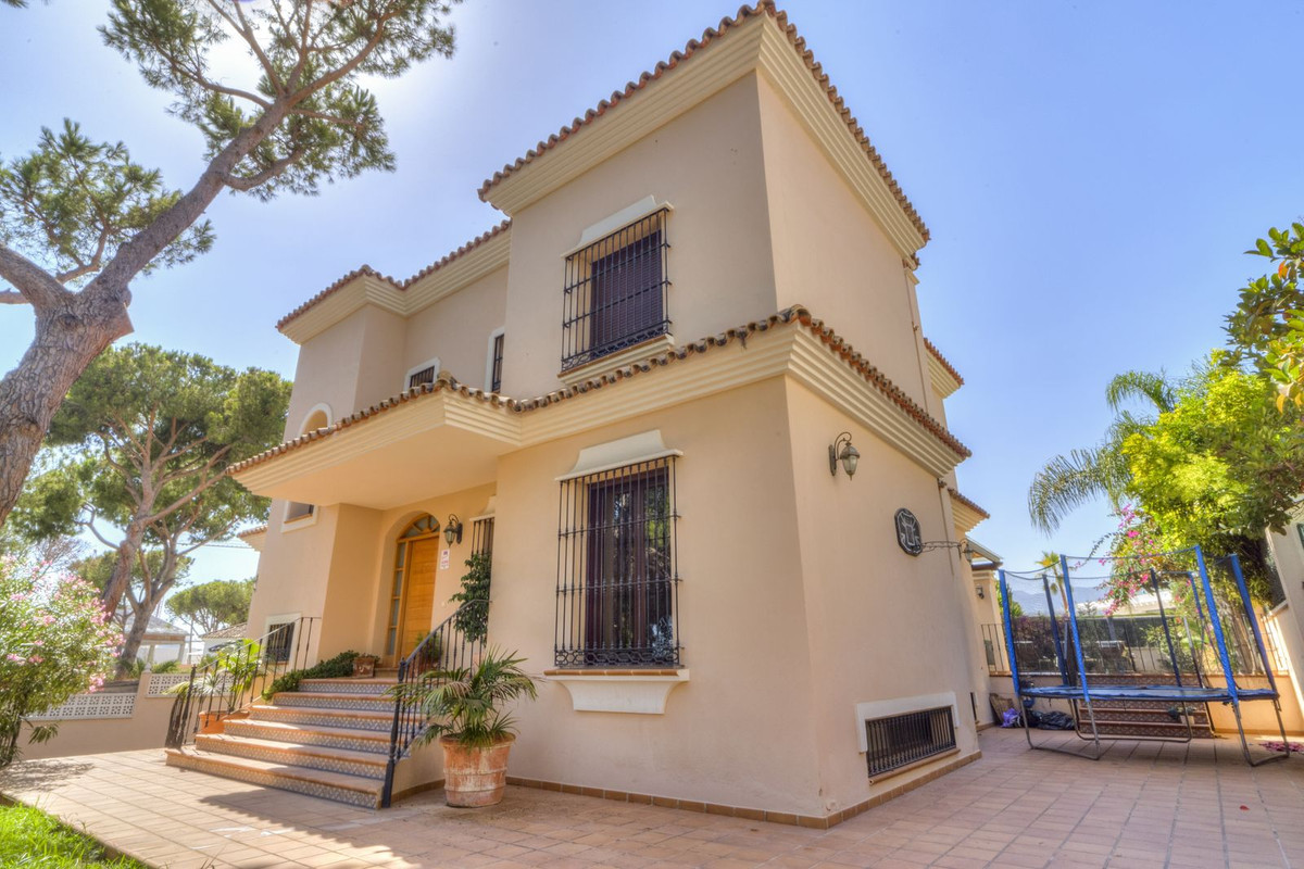 Discover this charming villa, strategically located in the prestigious area of Las Chapas, Marbella, just 300 meters from the beach. This property is ideal for those seeking a relaxed and comfortable lifestyle, with everything within walking distance from their home.
