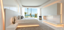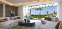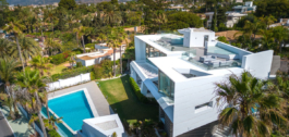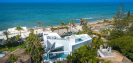 Located in this exclusive neighborhood, the villa enjoys a privileged beachfront location, offering privacy and breathtaking panoramic views of the Mediterranean Sea.