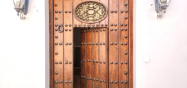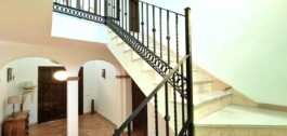 Three story marble staircases with wrought iron. Large two-story entrance hall with colored glass. A very large wood entrance door with another internal door inside.