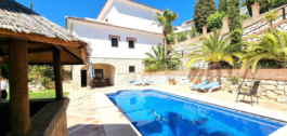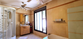 504 m2 built on a plot of 1111 m2. 5 Bedrooms, 4 bathrooms, 2 of them en-suite. Excellent build quality. Elevator to all 3 floors. Large open space on the ground floor that could. 2 storage water tanks downstairs, with laundry room and access to the outside patio and garden area with a large pool with mosaic dolphin on the bottom. Surrounded by an extensive terrace are with mature palm trees. Shower room and toilet. Tiki bar next to the pool.