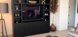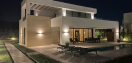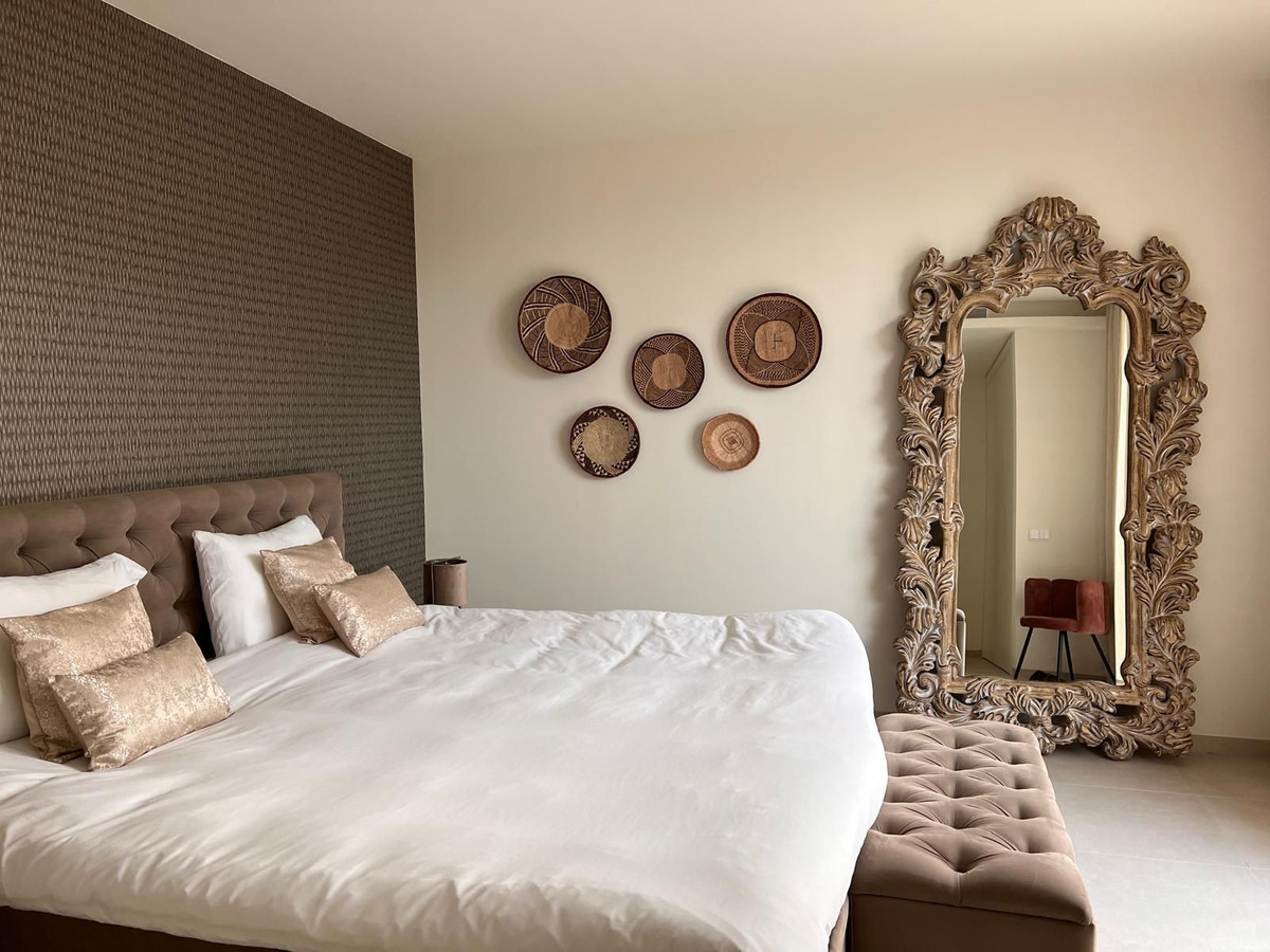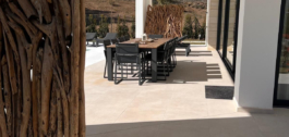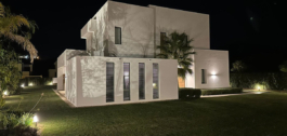 This modern villa has a very spacious, bright and stylishly decorated living room with an open kitchen equipped with all amenities.
