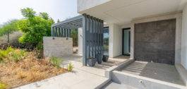 Built on a 700 m² south-facing plot, the villa features 165 m² of interior space across two levels, including 3 bedrooms, 2 bathrooms (one en-suite), a guest toilet, open-plan living, and access to a private garden and swimming pool. Each bedroom has access to its own terrace, enhancing the sense of light and connection to the outdoors.