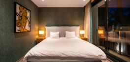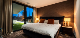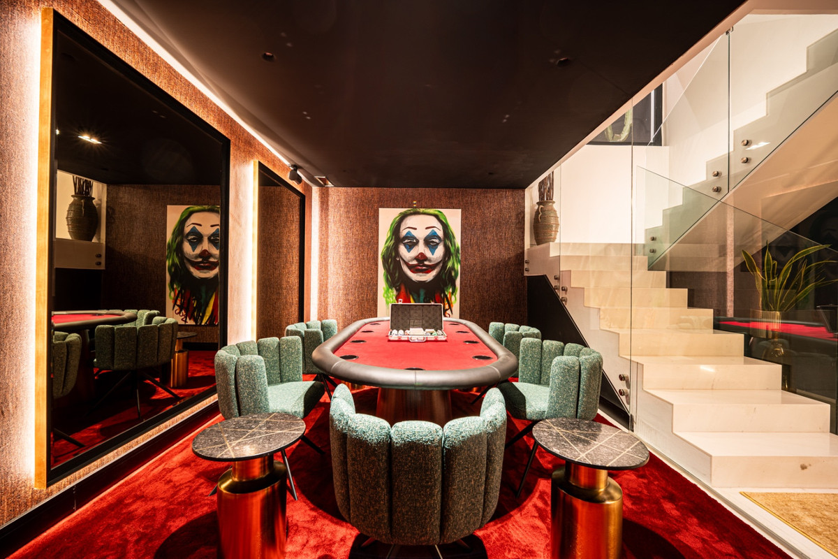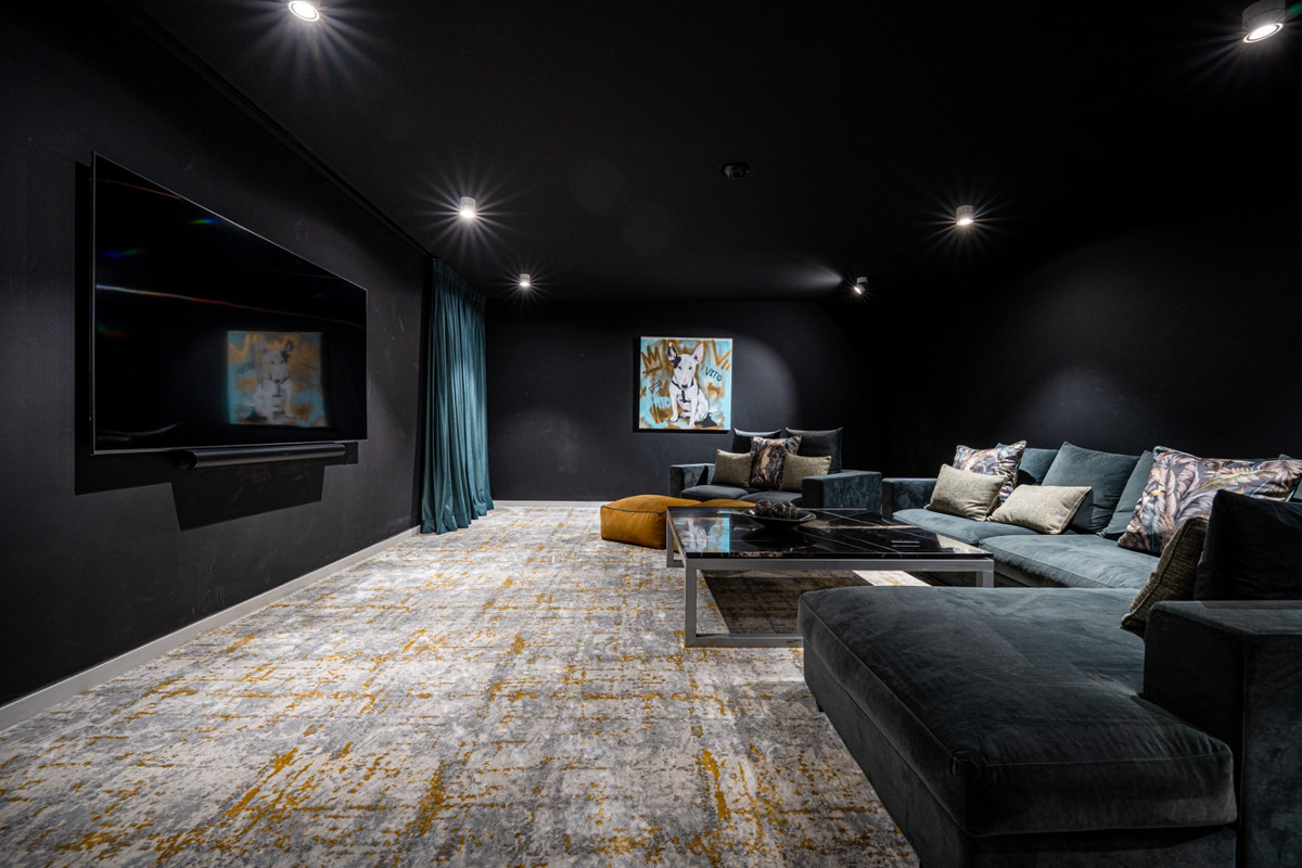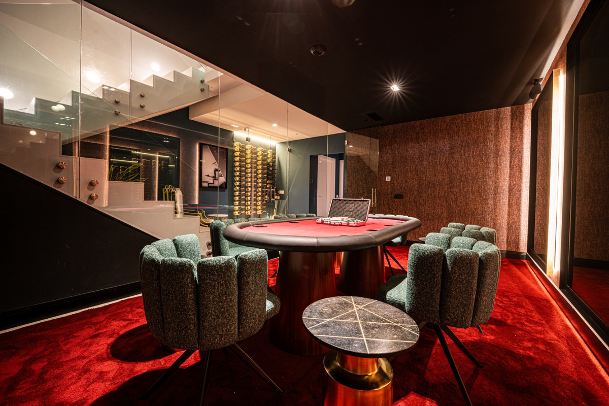 The villa has two guest bedrooms on the main floor, each with en-suite bathrooms and garden views. Upstairs, the master suite offers dual dressing rooms, a private office, and a large bathroom with a free-standing bathtub. The suite opens to a terrace with sweeping views. Another en-suite bedroom completes the upper floor. The basement level includes a private gym, cinema, wine cellar, and entertainment spaces, giving you everything you need for both relaxation and leisure.
