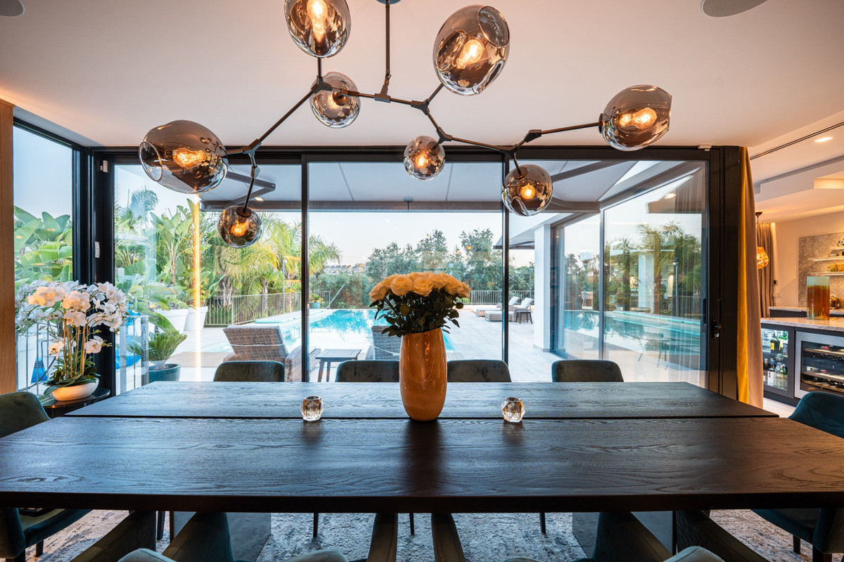 This is a luxury home in Marbella’s most exclusive gated community. The villa is spread over three levels and combines modern design with Mediterranean charm. It offers panoramic views of the golf course and mountains, with a south-facing position that ensures natural light throughout the day. Inside, the home features spacious open-plan living, a contemporary kitchen, and seamless access to the terrace with pool, jacuzzi, and outdoor kitchen.