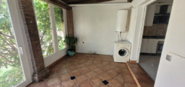 The property also includes a garage on the ground floor and a separate guest/staff apartment, which consists of one bedroom, a living-dining area with an open-plan kitchen, and a bathroom with shower. This apartment has direct access to the garden.