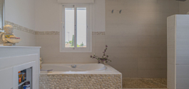 Outside, there is a generous 650 m² plot with a garden and private pool, ideal for enjoying the Mediterranean climate year-round.