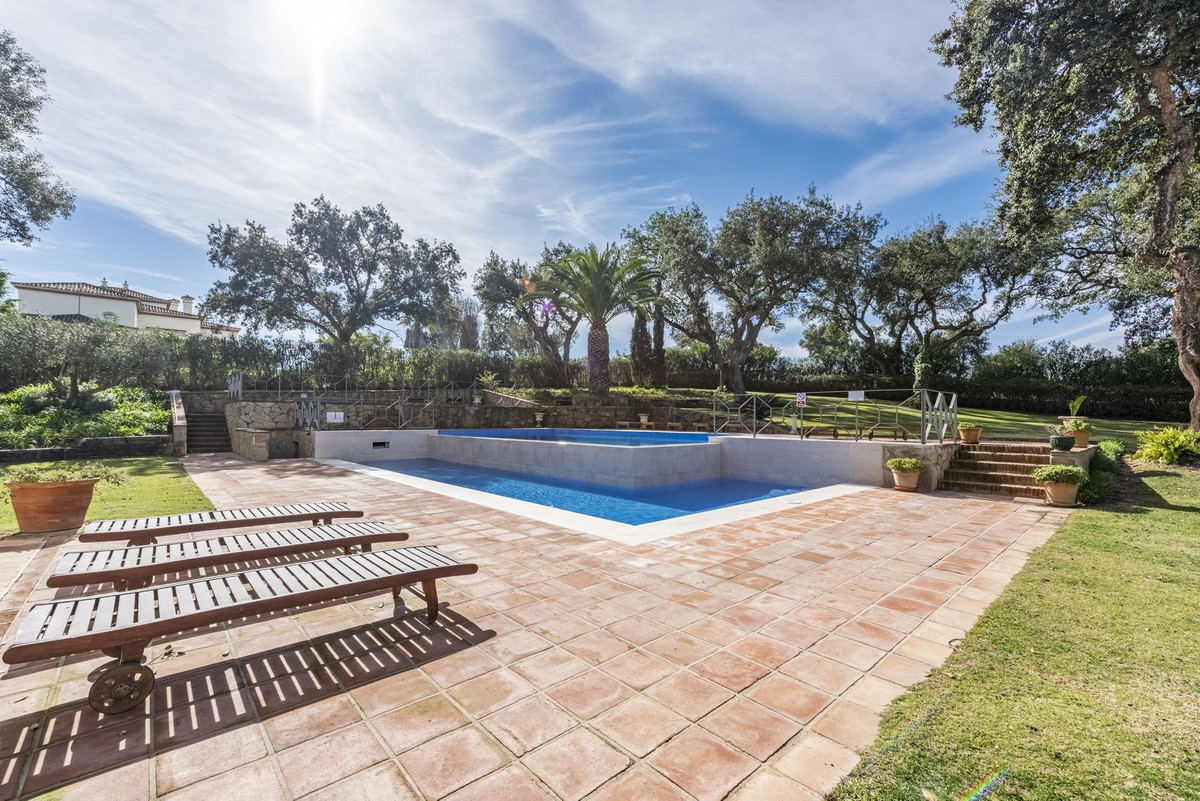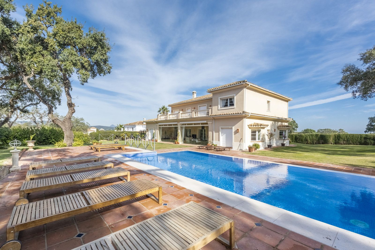 San Roque Golf : Stunning villa located in the prestigious San Roque Club. Located on the first hole of the "Old Course" with beautiful views over the "New course" towards the sea. Built in 1999 but completely upgraded in 2005. One of the many high end features is the swimming pool complex with cascading falls and jacuzzi. Beautiful entrance hall leading to a large sunken lounge, seperate family room make this the perfect villa.