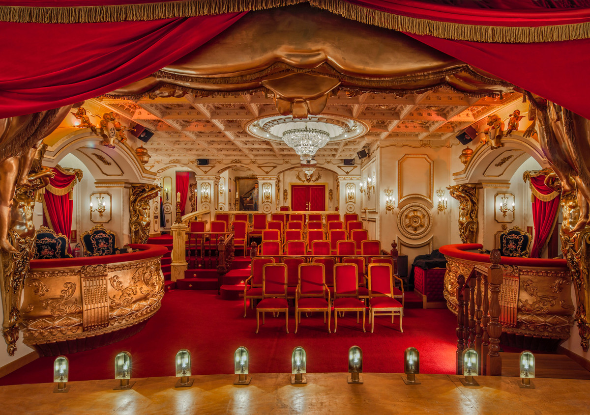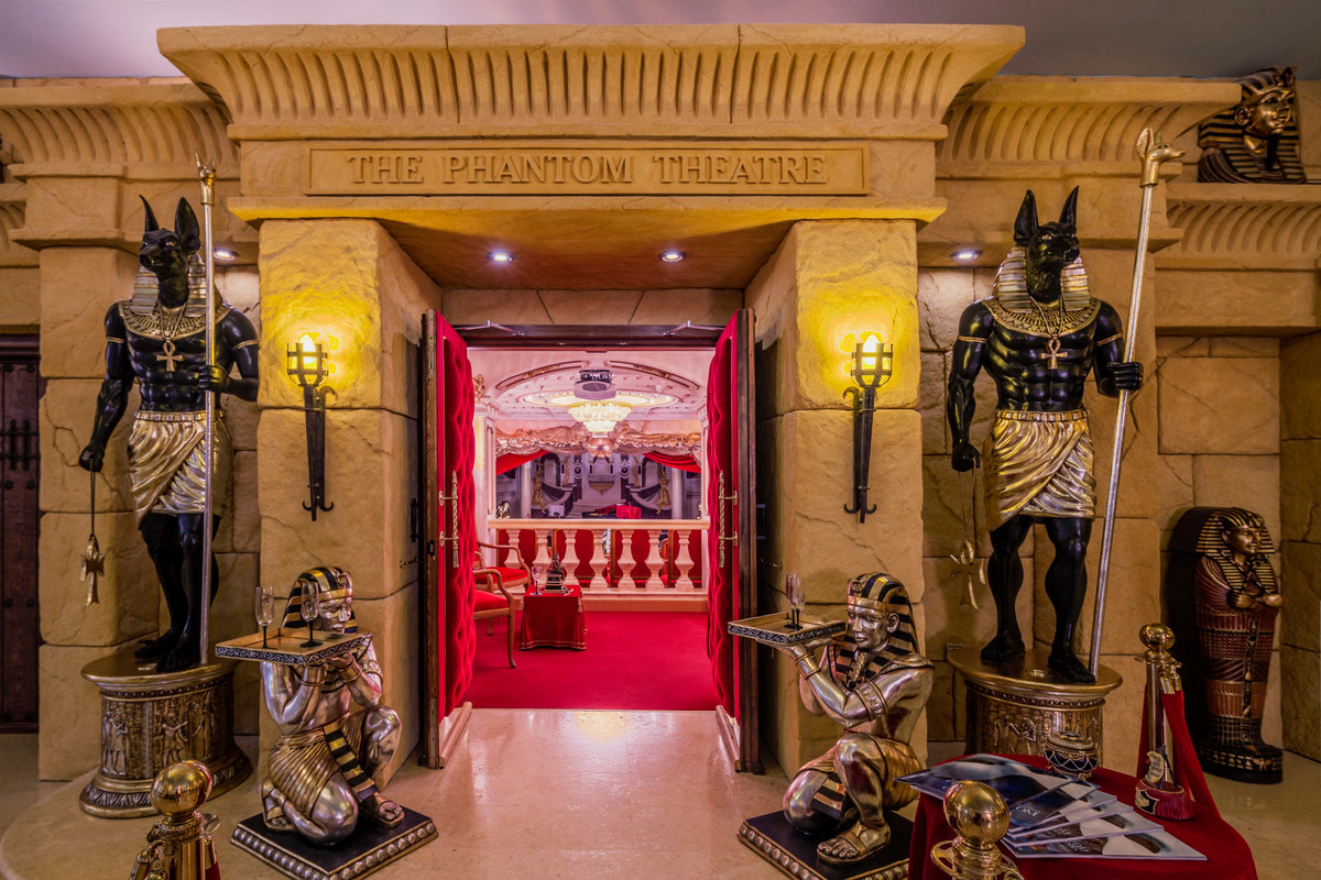 Could there possibly be more to this already fabulously unique home … now to the "pièce de résistance". From the Egyptian lounge you have entry into a miniature replication of Her Majesty's Theatre London, complete with royal boxes and seating for 50 guests. Set up and ready to host the classic stage show of Phantom of the Opera, a personal favourite of the owner and designer of the is magnificent property. Here you will enjoy producing your own stage performances, hosting small concerts or use this amazing space as a cinema as it is also equipped with projector and full sound system.