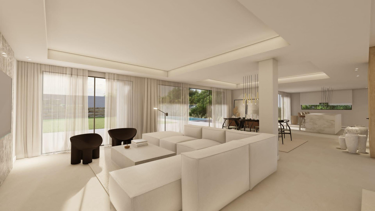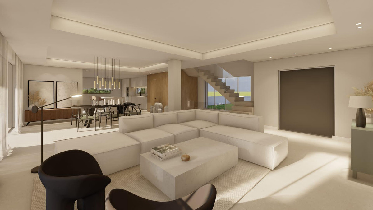 Immerse yourself in the charm of this new house, nestled in the heart of the sought-after Zone F of Sotogrande. Spanning a vast 1280 m² plot, this 410 m² residence offers an ideal living environment for modern families seeking space and functionality. From the entrance, you will be welcomed by a spacious 80 m² living and dining area, creating a warm space for family gatherings and convivial moments. The 40 m² kitchen, fully equipped with Gaggenau appliances, is a sanctuary for cooking enthusiasts, offering an unparalleled place for conviviality. This house offers a total of 5 bedrooms, including 3 en-suite with private bathrooms and walk-in closets, ensuring comfort and privacy for the whole family. Two additional, simple but elegant bedrooms share a large common bathroom. A guest WC on the ground floor completes the practical layout of this home.
