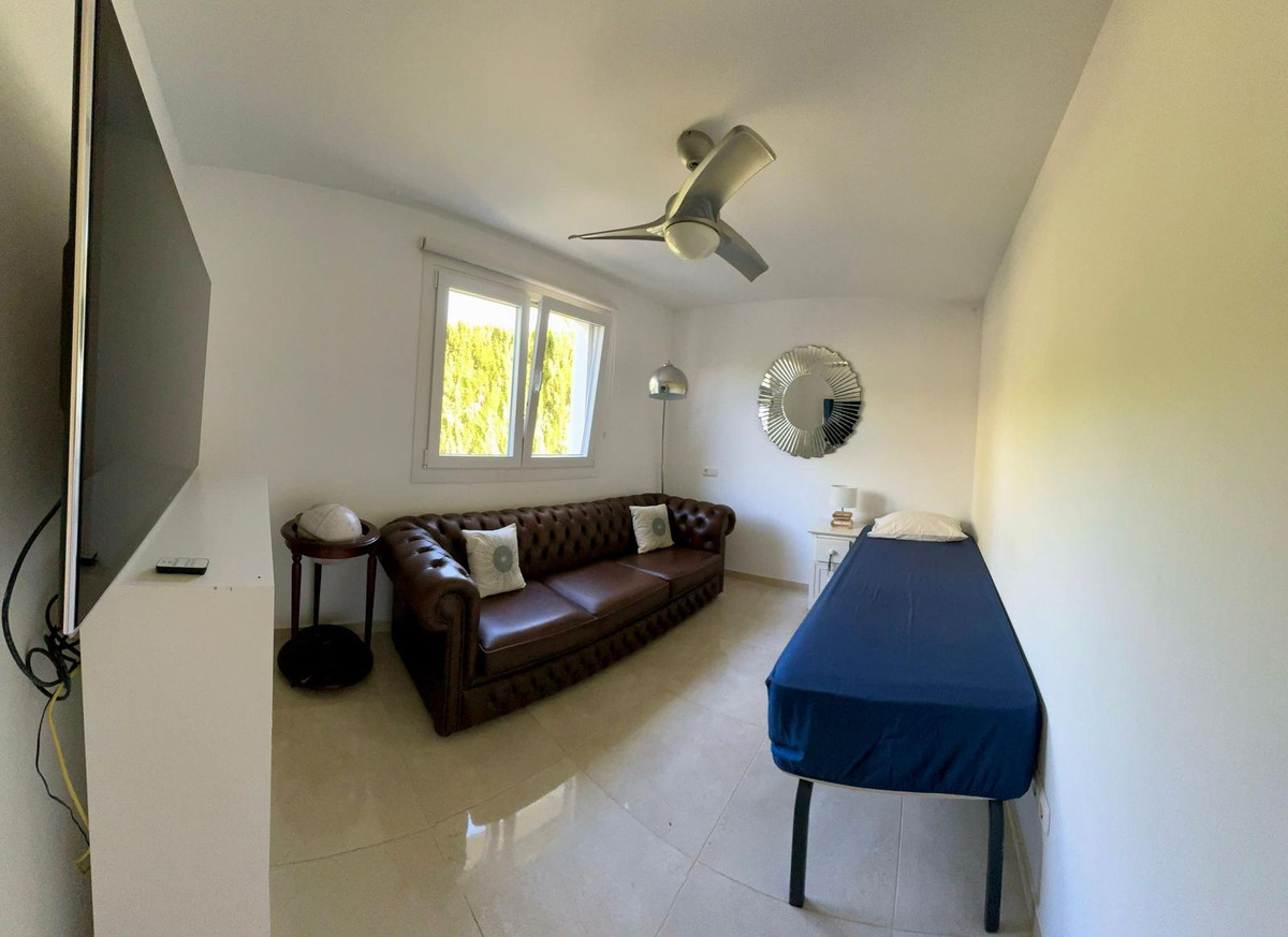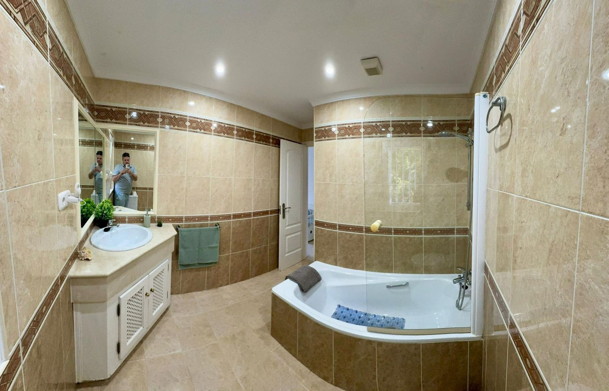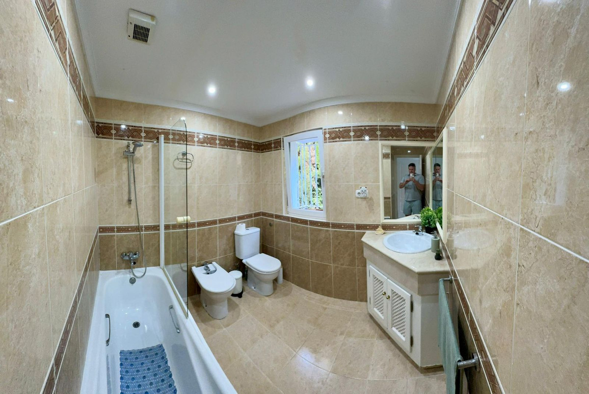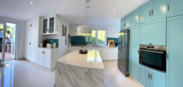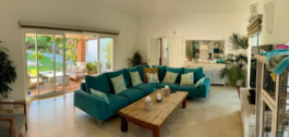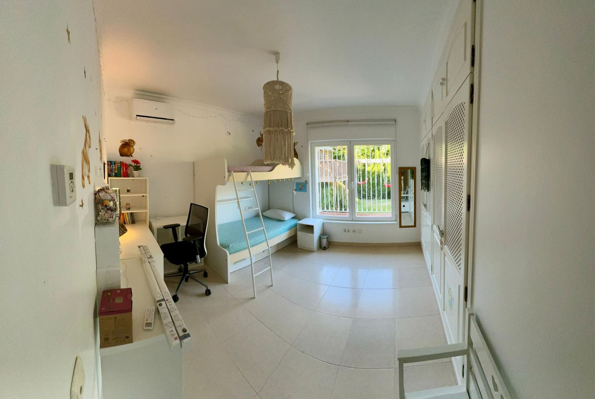 Fabulous family home in the exclusive area of Sotogrande. This 5 bed villa is located on the beachside of the main A7 road and close to a number or shops and amenities, as well as the beach and marina of Sotogrande. The property has a lovely entrance and drive way, leading to a private garage and to the front of the house, which faces the well maintained pool and garden. There are various outdoor living areas, where you can enjoy all day sunshine, or find some much needed shade in the hot summer months. There are chill out areas, dining areas and a superb spot for BBQ and an outdoor pizza oven. The villa is exceptionally well priced and is perfect for either a holiday home, or permanent family residence.