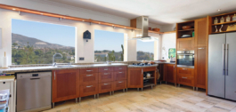 Inside is the social areas on the main floor. the living room and kitchen has an open floor plan. Here you will also find a walk-in closet, one bedroom and two bathrooms. On the lower floor you will find the master bedroom two guestrooms with its bathrooms. Here is also the separate apartment located, with its own kitchen and bathroom, it has its own entrance and terrace and could be an integrated part of the rest of the house or seen as a separate apartment.