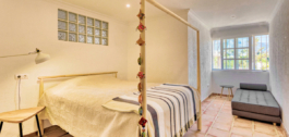 There are several lounge areas in the tropical garden where you can relax, eat, or socialize. At the covered terrace, next to the pool, you will find shade during the day and n open fireplace at night. Here is a perfect spot to relax day or night.