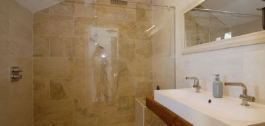 Two bedrooms with en-suite bathrooms, each with its own terrace – one with sea view, the other with sea and mountain views.