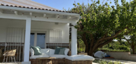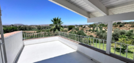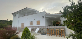 The house is set on a fully fenced plot of over 6300m² and it features plantation of olive trees, along with a large variety of fruit trees. The property has town water and connection to irrigation water.