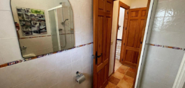 A wide staircase leads to the first floor, where there are four bedrooms and two bathrooms. At the end of the hallway is the very large master bedroom with en-suite bathroom. The special features of this room are the French doors with access to the swimming pool and the many windows with great views.