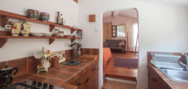 The separate guest house has a private terrace with beautiful views of the property's garden, a spacious bedroom, a fully equipped kitchen and a bathroom.