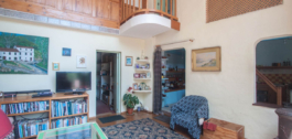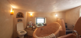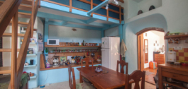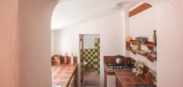 This open-plan kitchen connects via a staircase to the first floor, with a master bedroom and a bathroom, both in Moorish style, a further two bedrooms, a laundry area and a storage area for the weaving mill, again this area could be repurposed for accommodation.
