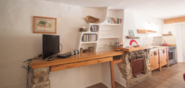 Also on the first floor, there is the main area of the house with a large fully equipped kitchen, a living room with large glass doors and windows that go from floor to ceiling which connect with a terrace from where you can see the spectacular views of the Crestellina mountain.