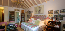 A masterpiece of traditional Andalusian architecture, featuring original wallpapers by renowned French designer Christian Lacroix, with matching fabrics that create a vibrant, colorful interior reflecting the tropical flowers and citrus trees surrounding the estate.