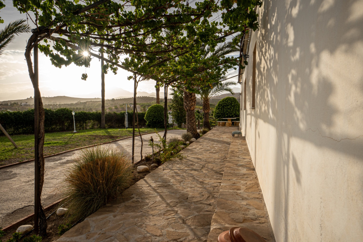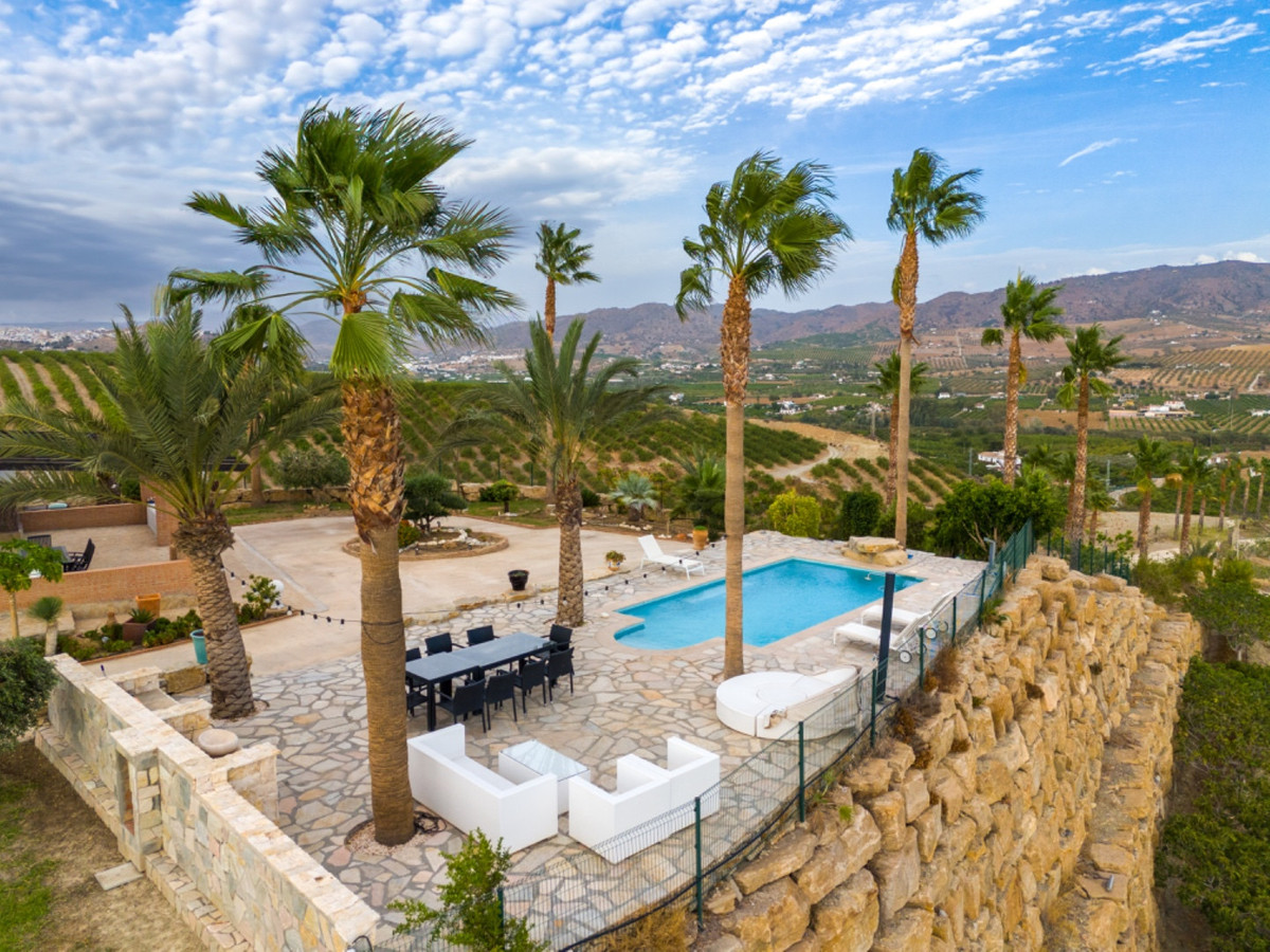Finca Pizarra is a magnificent country estate set across 14 hectares of private land between Álora and Pizarra. The property offers sweeping mountain views, total privacy, and an elegant home surrounded by fig trees and landscaped grounds. A long private driveway leads past a beautiful swimming pool to the main house and outbuildings, creating a grand sense of arrival.