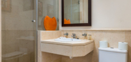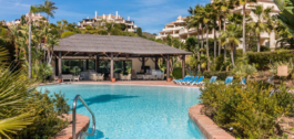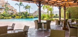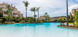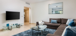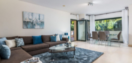 The apartment is on the ground floor and has hot and cold air conditioning throughout. It is a luxurious apartment with marble floors and contemporary furnishings. The development is surrounded by its own golf course and is fully gated with 24 hour security. The grounds have been thoughtfully landscaped and there are a number of pools, including the beautiful indoor pool, gym and spa area.