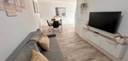 The living-dining room is very cozy, perfect for relaxing after a day at the beach. The kitchen is fully equipped. In addition, it has built-in wardrobes that maximize storage space.
