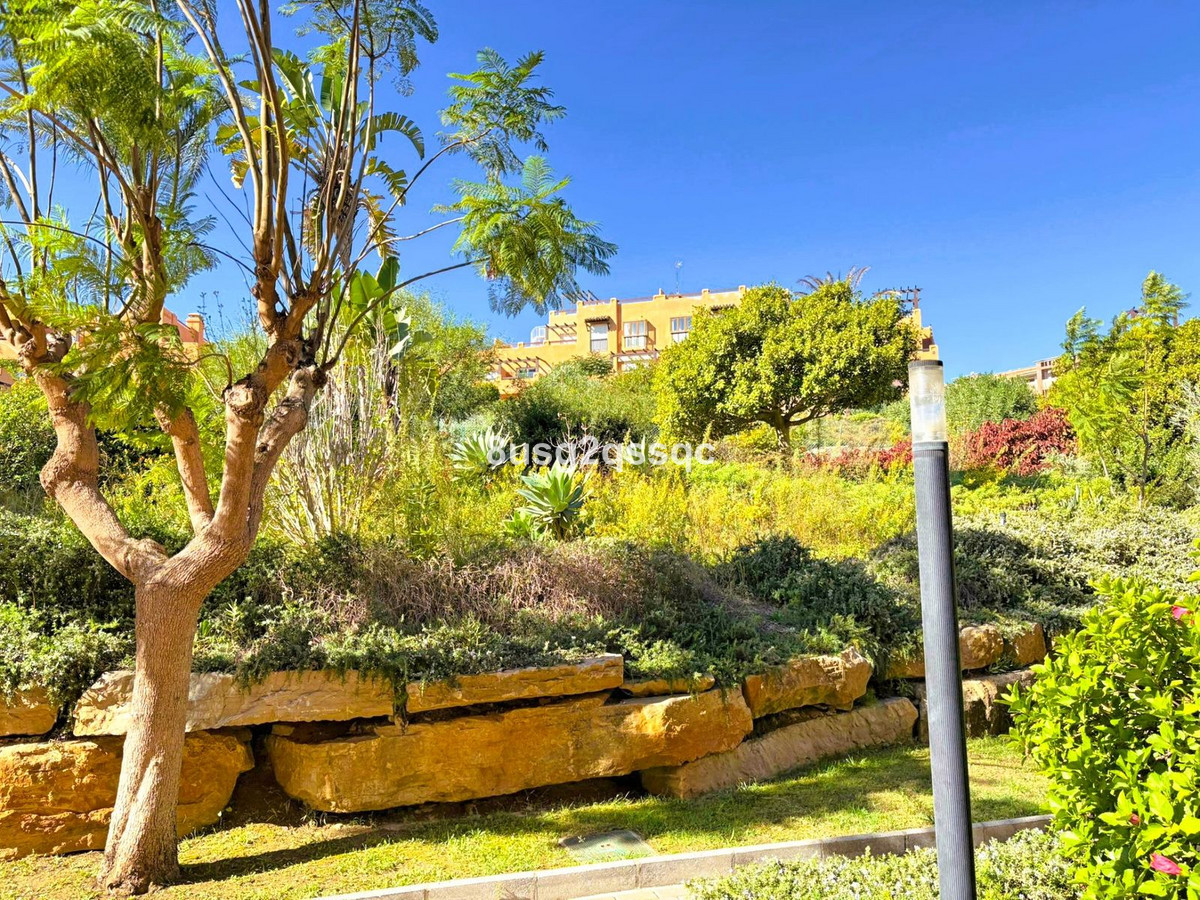 Set within the peaceful gated community this beautifully renovated 2-bedroom, 2-bathroom ground floor apartment offers the perfect blend of comfort and convenience – ideal for seamless indoor-outdoor living. This east-west facing residence offers natural light throughout the day and features a generous covered private terrace perfect for dining while enjoying distant sea views surrounded by lush gardens.
