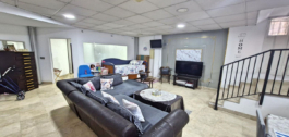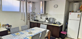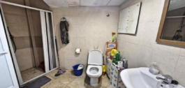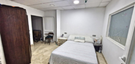 This is a 1-bedroom, 1-bathroom ground floor apartment with its own entrance directly from the street. The property includes an open-plan kitchen and living room, a bedroom with adjoining storage, and a large bathroom with shower and utility area.