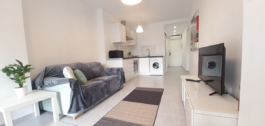 As you enter the property, to the right side there is a single sized bedroom. The living room is spacious with high ceilings and is very well lit due to the apartment being South facing, which means there is sun all day. There is an open plan American style fully equipped kitchen, with brand new white goods that has just been installed.