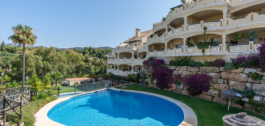 Very nice and bright elevated ground floor apartment in the complex Colorado Hills in Elviria in east Marbella. The apartment offers two bedrooms with en-suite bathrooms, both with underfloor heating, a guest toilet, a good sized and fully equipped kitchen with separate laundry room and a very large living room with open fire place and access to the beautiful covered terrace with lovely views to the green areas. Marble floors, AC hot and cold, underground parking space and storage room. Elevator. Gated complex with pool area and garden area with within a short five minute drive from Restaurants and commercial centers and to the beach.