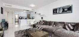 There is a spacious lounge and an open plan kitchen which is fully fitted with all appliances. The property is to be sold alongside an underground parking space and storage room.