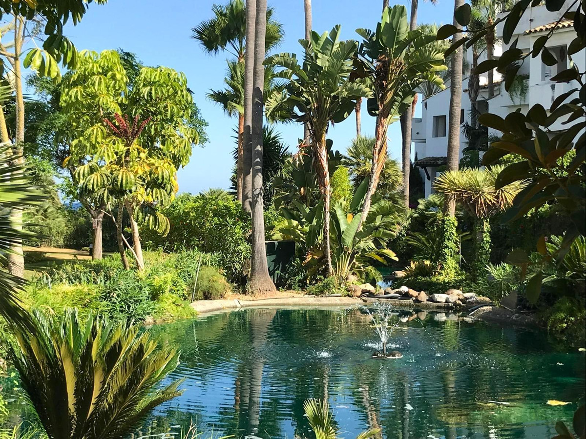 Beautiful 90 m2 apartment with 2 bedrooms and 2 bathrooms, a terrace with garden views, and direct access to the beach in an exclusive Estepona development.